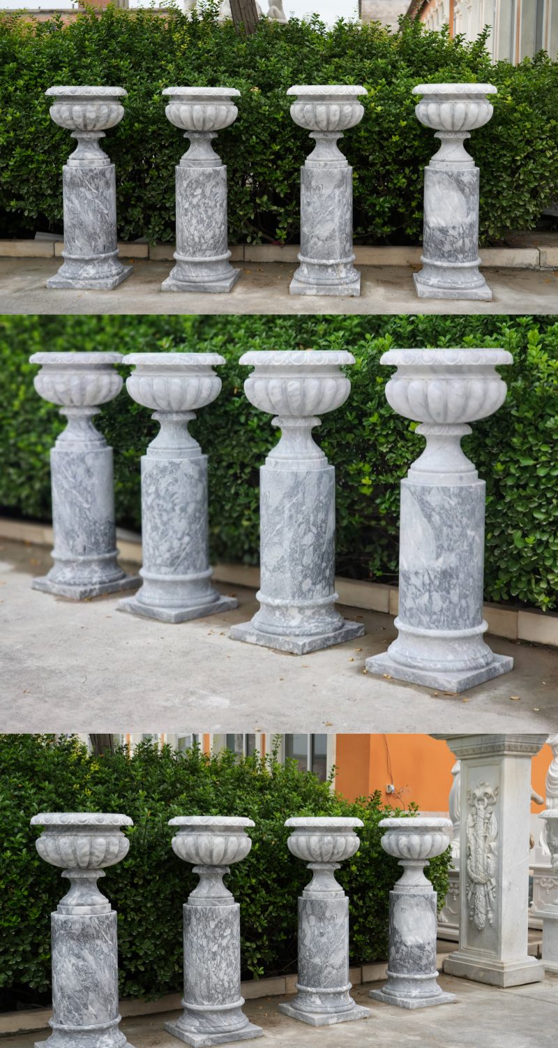 This is a very simple marble outdoor planter, suitable for decoration in any environment, and can bring atmosphere to your space. The upper end of the marble flowerpot is carved into the shape of a blooming flower. The artist retains the natural veining of the marble, so no planter is exactly the same. Each marble flowerpot is unique, adding natural beauty to the flowerpot.