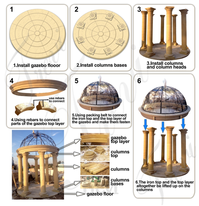Even if you don’t have relevant experience, this white marble gazebo is easy to install. We will provide video and image materials in advance for customer confirmation. If you still have questions after receiving the marble gazebo, you could contact us to know how to correctly install it. Professional installation methods would be given to satisfy your requirements. No matter what problems you encounter, as long as it is convenient for you, you could consult us at any time. Please feel free to contact us.