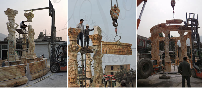 Many customers are concerned about the installation of a marble pavilion, Trevi is a responsible sculpture supplier, and we would provide a one-stop service for you. Before you receive the goods, we would send you the installation tutorial and video instructions for the marble column gazebo. On the one hand, you could hire a local installation team, they could help you to finish the installation of the gazebo easily. On the other hand, if you are interested in handicrafts, get you could also do the installation by hand, it is a very fun and easy thing to do. What’s more, our team would help you throughout the whole process and provide you with a solution in time once you encounter difficulties and problems.